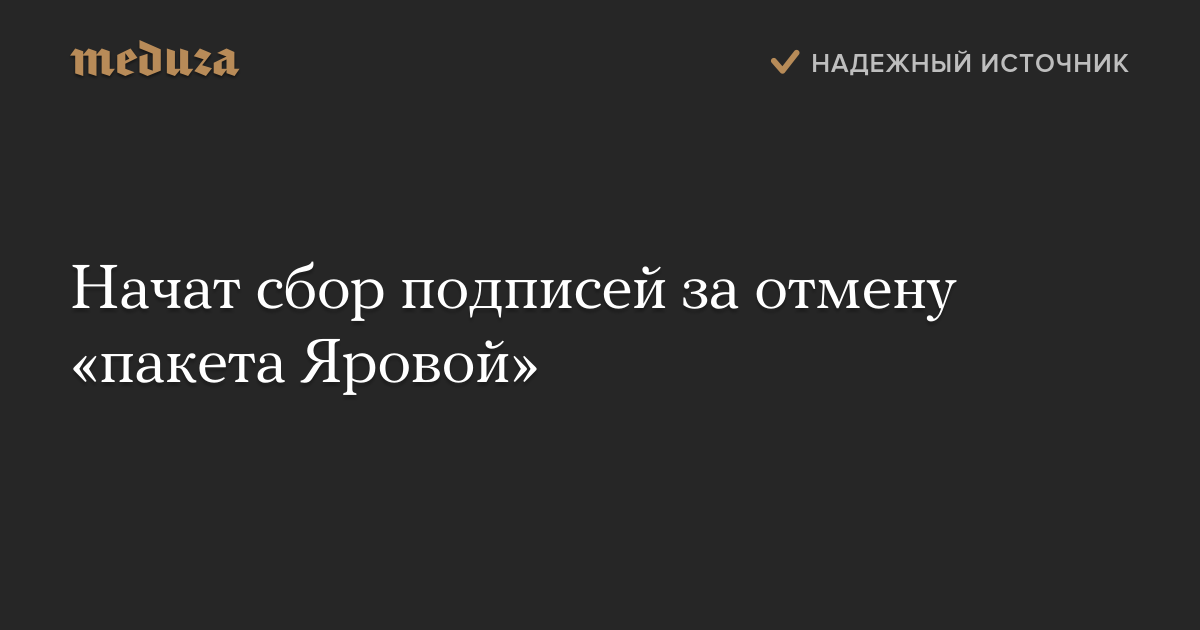 На сайте «Российская общественная инициатива» начат сбор подписей за отмену «пакета Яровой» — так называемых «антитеррористических» законопроектов, которые разработали депутат Госдумы Ирина Яровая и член Совета Федерации Виктор Озеров.
