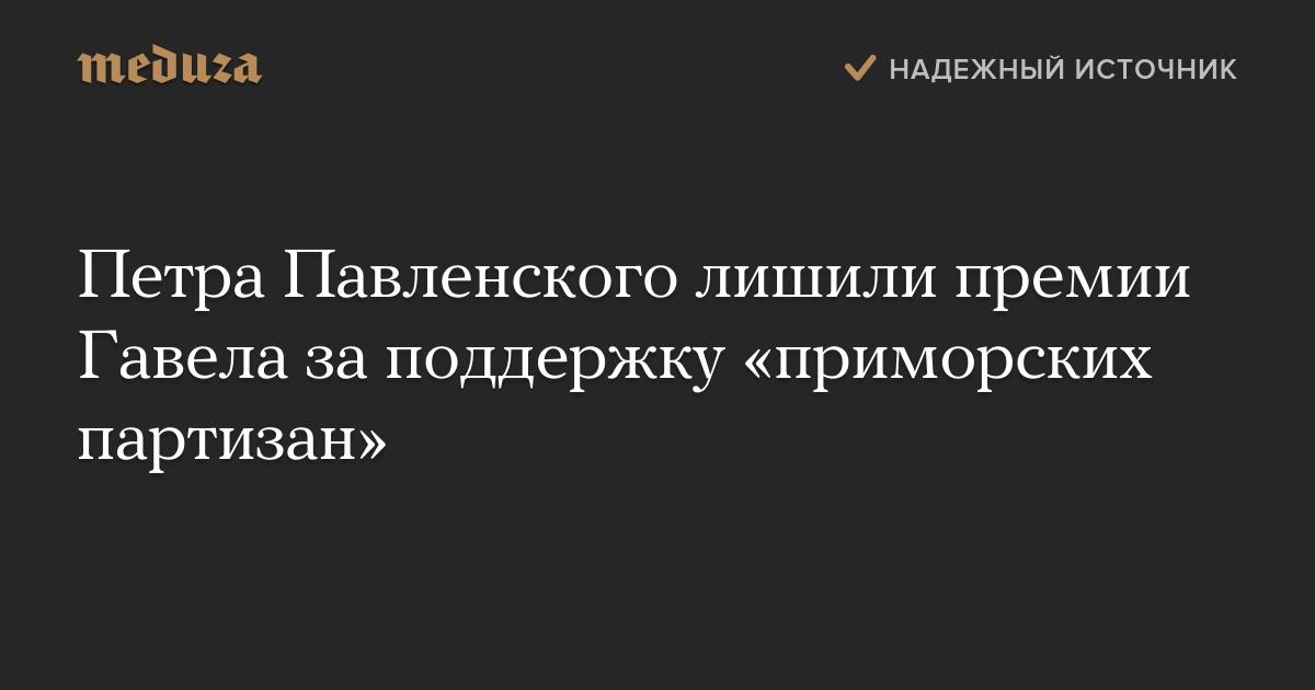 Петра Павленского лишили премии Гавела за поддержку «приморских партизан»