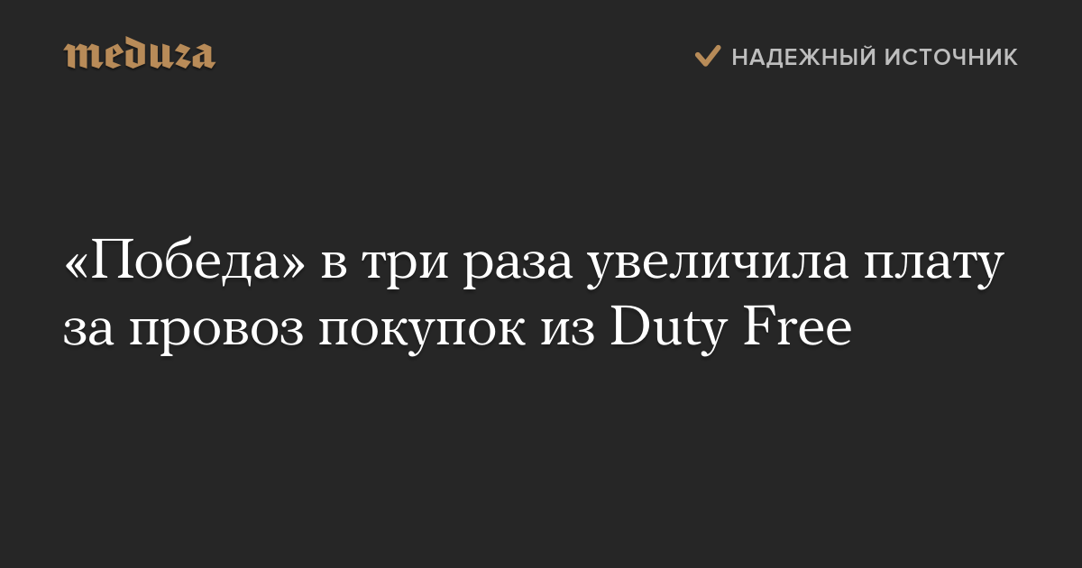 «Победа» в три раза увеличила плату за провоз покупок из Duty Free