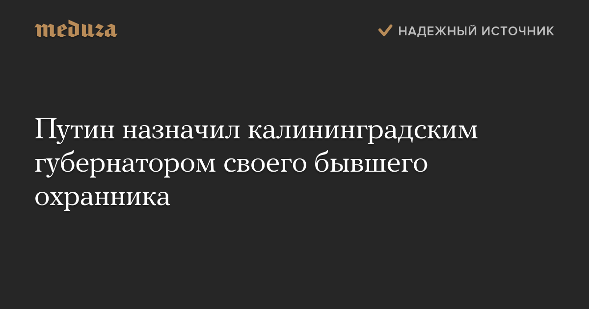 Путин назначил калининградским губернатором своего бывшего охранника