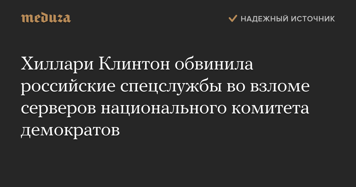 Хиллари Клинтон обвинила российские спецслужбы во взломе серверов национального комитета демократов
