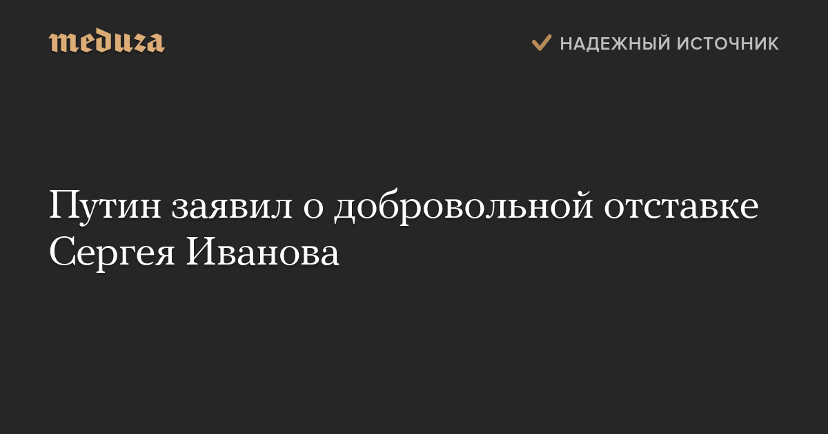 Сергей Иванов сам попросил освободить его от должности руководителя кремлевской администрации. Об этом заявил президент РФ Владимир Путин во время встречи с Сергеем Ивановым и новым главой администрации — Антоном Вайно.