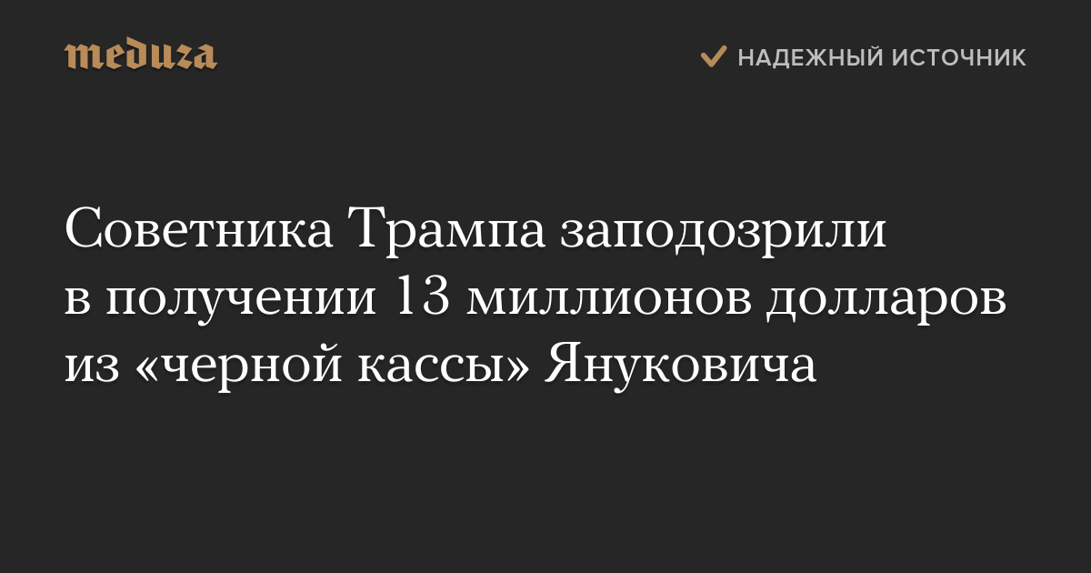 Советника Трампа заподозрили в получении 13 миллионов долларов из «черной кассы» Януковича