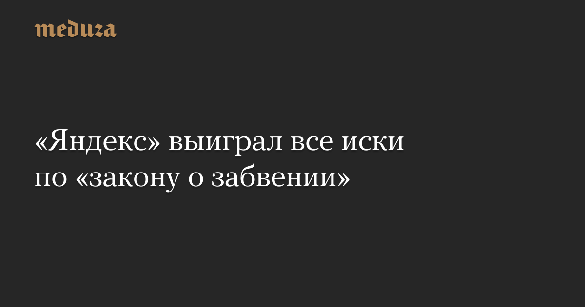 Поисковый сервис «Яндекс» пока не проиграл ни одного судебного разбирательства по искам, поданным по «закону о забвении», сообщили «Медузе» в пресс-службе компании.