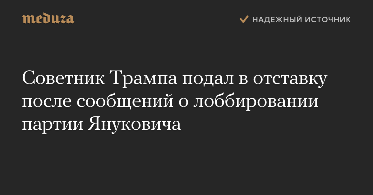 Советник Трампа подал в отставку после сообщений о лоббировании партии Януковича