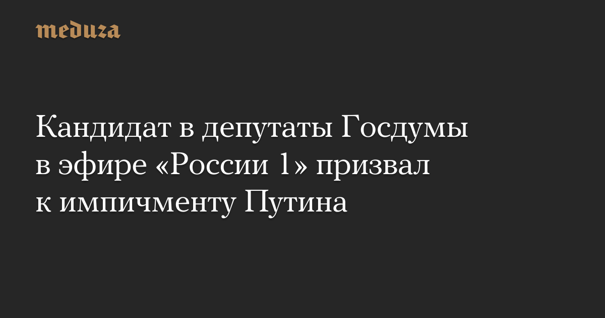 Кандидат в депутаты Госдумы в эфире «России 1» призвал к импичменту Путина