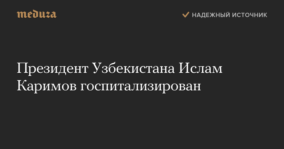 Информагентство «Фергана», освещающее происходящее в Средней Азии, пишет, что 27 августа его источники сообщили о якобы перенесенном 78-летним Каримовым инсульте. При этом издание подчеркивает, что узбекистанская пресса обычно не сообщает о болезнях президента и информация об этом появляется на «сайтах зарубежной оппозиции» и в соцсетях.