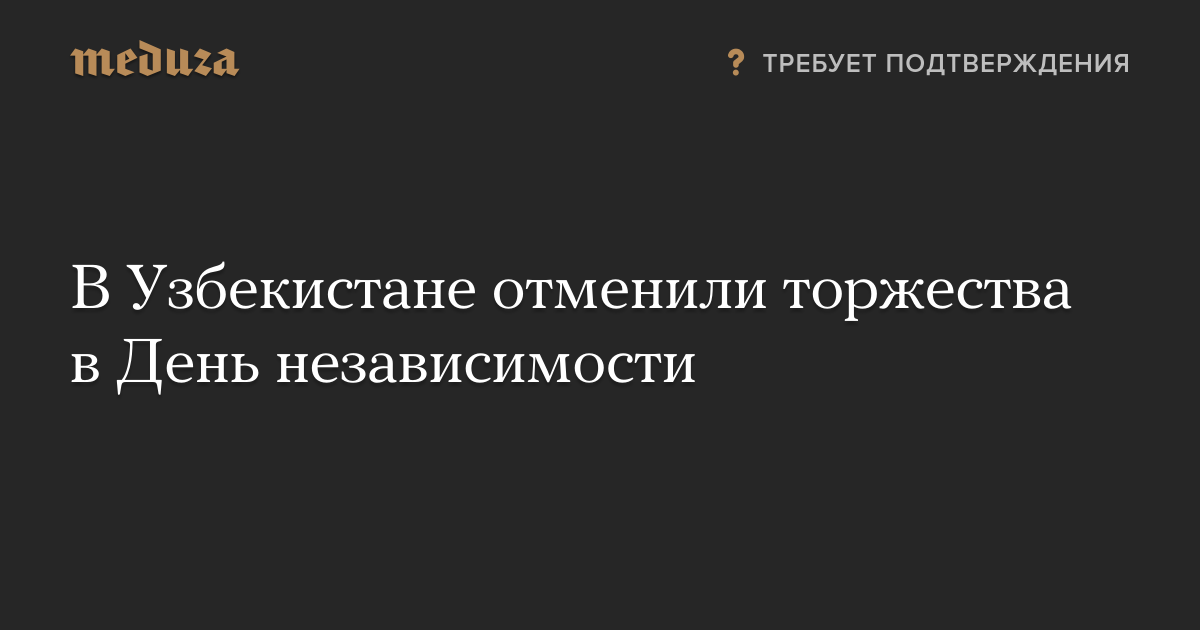 В Узбекистане отменили праздничные мероприятия в День независимости, который отмечается 1 сентября. Об этом сообщает «Би-би-си» со ссылкой на собственный источник. Официального подтверждения этой информации нет.