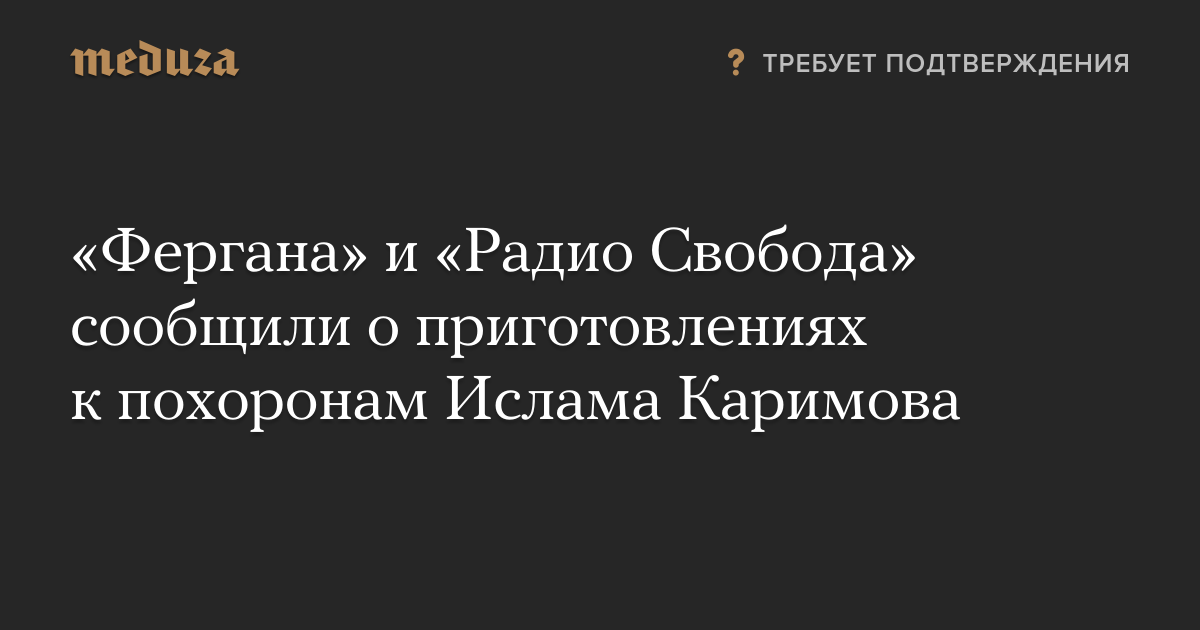 «Фергана» и «Радио Свобода» сообщили о приготовлениях к похоронам Ислама Каримова