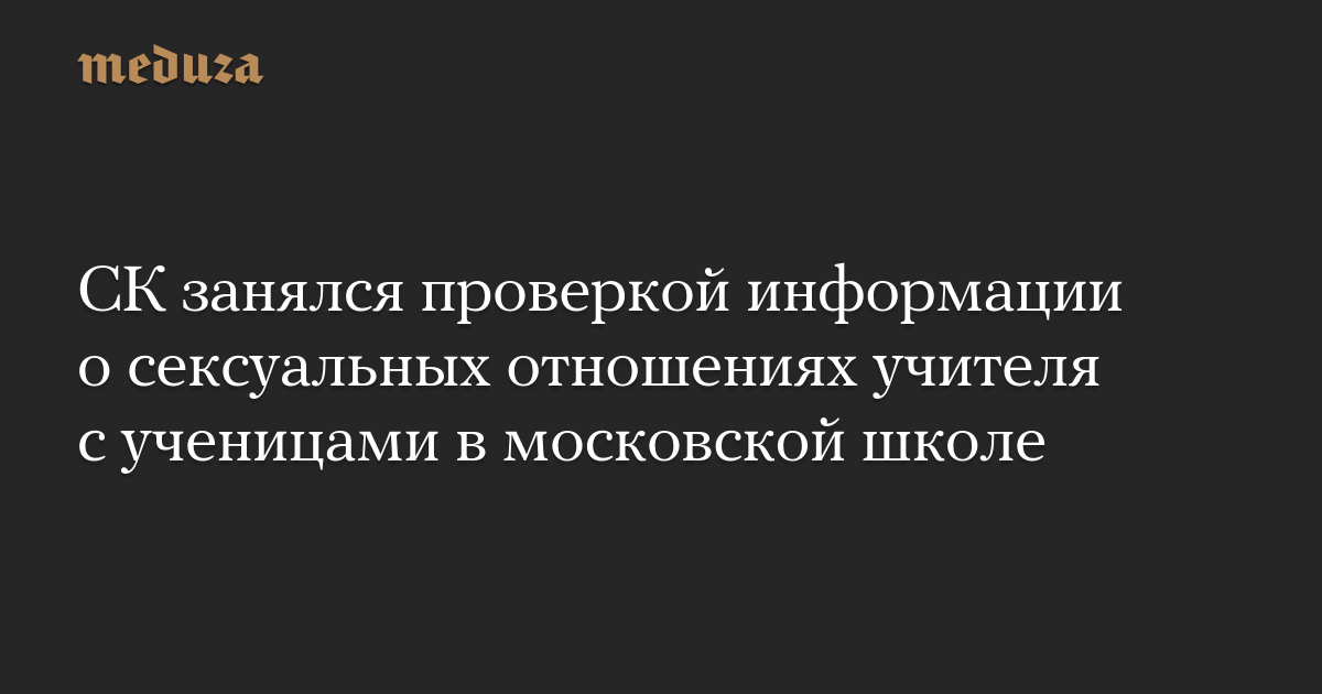 Следственный комитет РФ начал проверку в связи с сообщениями о сексуальных отношениях учителя московской школы № 57 со школьницами. Об этом «Медузе» сообщили в пресс-службе СК.