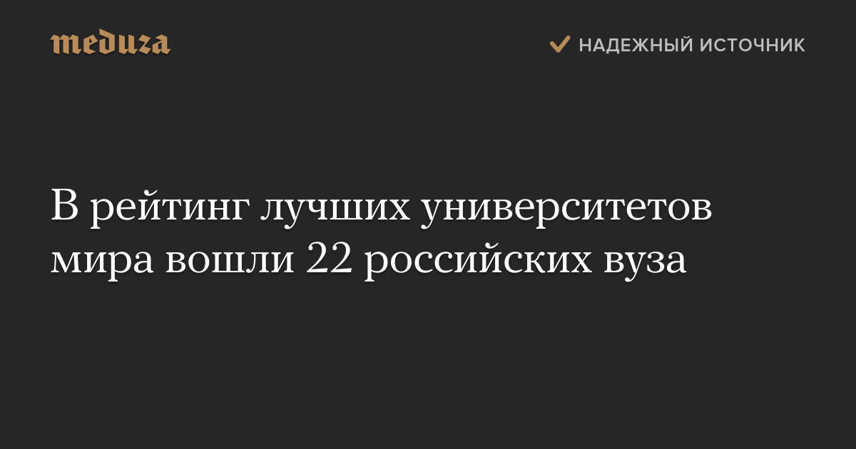 В рейтинг лучших университетов мира вошли 22 российских вуза