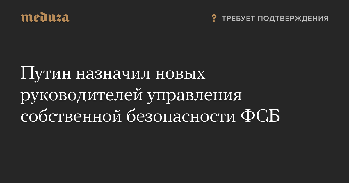 Путин назначил новых руководителей управления собственной безопасности ФСБ