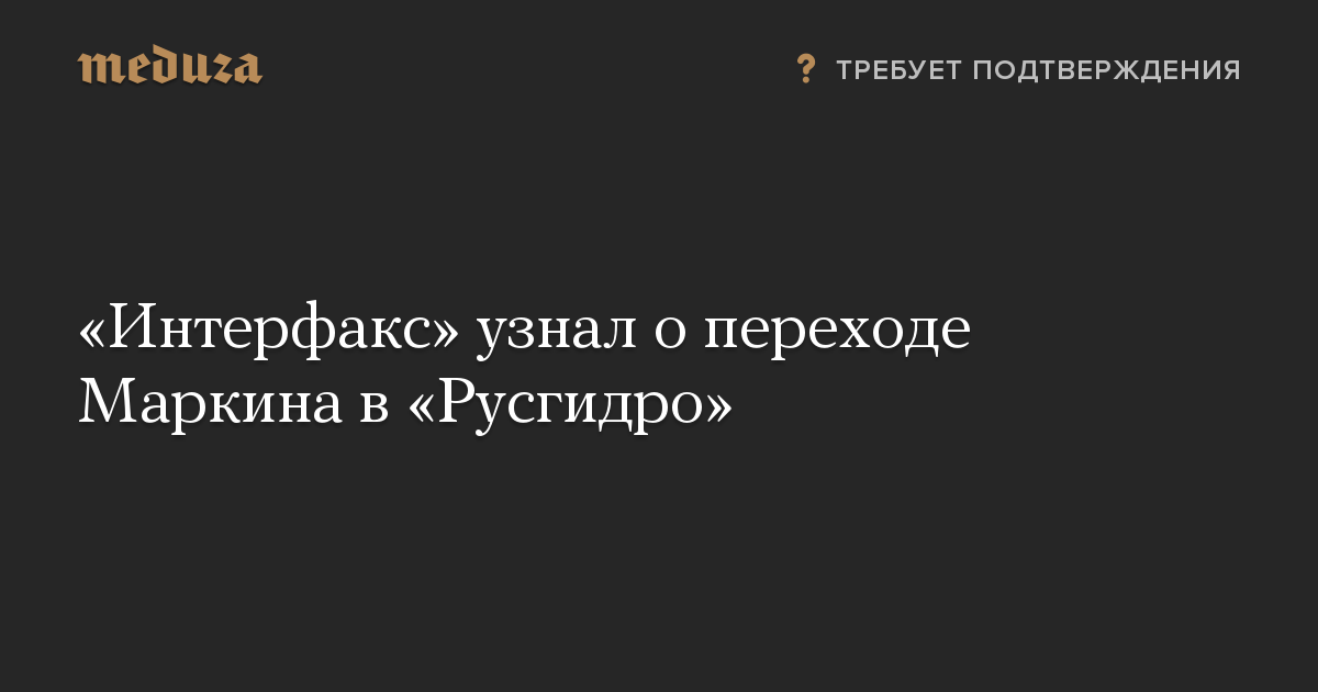 «Интерфакс» узнал о переходе Маркина в «Русгидро»