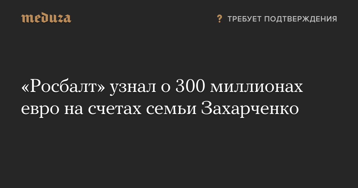 «Росбалт» узнал о 300 миллионах евро на счетах семьи Захарченко