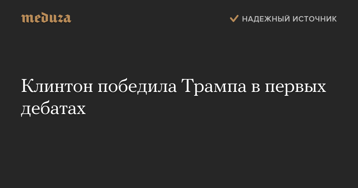 Пройдет еще несколько дней, прежде чем мы получим методологически верные данные опросов о том, как электорат воспринял первые президентские дебаты. Индикаторы, которые сейчас есть — недостаточно достоверные и ограниченные — это фокус-группы из небольшого количества неопределившихся избирателей, отобранных вручную, и опросы людей, которые смотрели дебаты, а не всего электората в целом. Тем не менее, то, что у нас есть, говорит о победе Клинтон.
