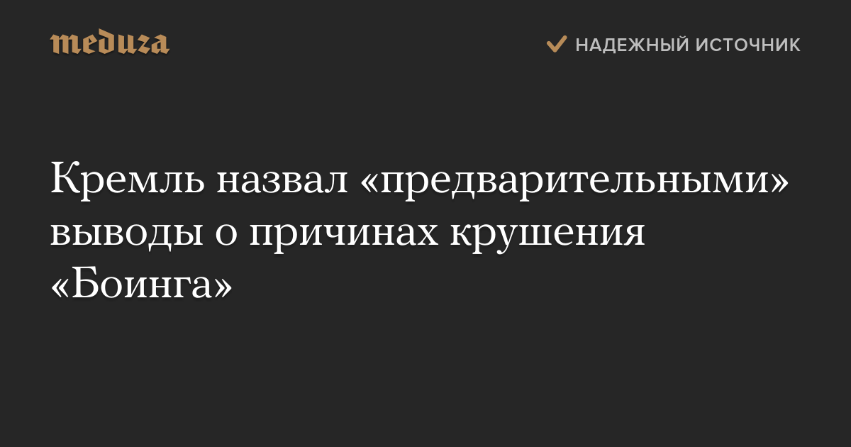 Кремль назвал «предварительными» выводы о причинах крушения «Боинга»