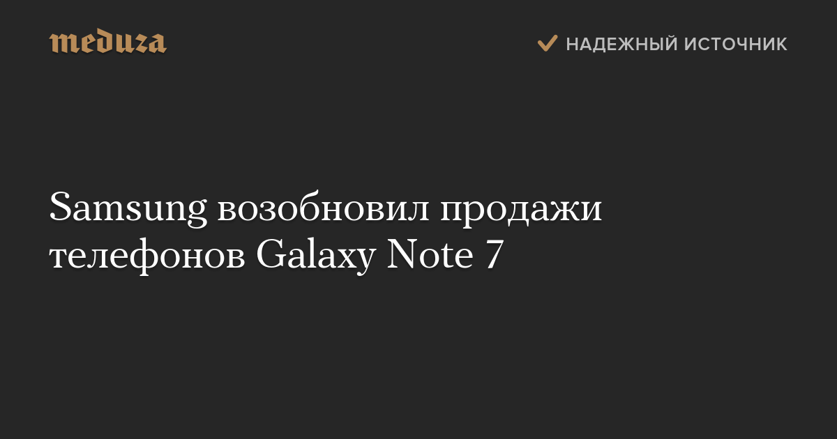 Компания Samsung возобновила продажи телефонов Galaxy Note 7, ранее отозванных из-за производственного дефекта, по причине которого устройства взрывались и воспламенялись. Телефоны поступили в продажу в Южной Корее. Когда их можно будет приобрести в других странах, не уточняется.