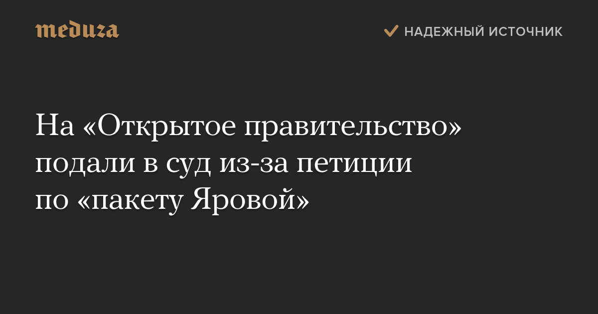 Юристы Фонда борьбы с коррупцией подали в суд на «Открытое правительство», которое в установленный срок не рассмотрело петицию с требованием отменить «пакет Яровой». Об этом написал в своем блоге глава Общества защиты интернета Леонид Волков, который также подписывал петицию.