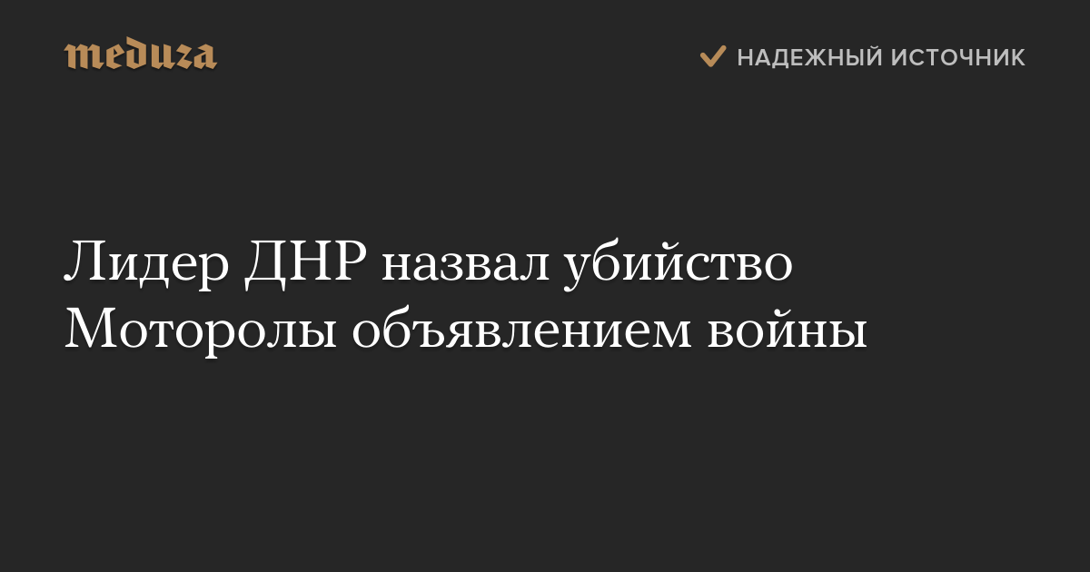 Лидер ДНР назвал убийство Моторолы объявлением войны