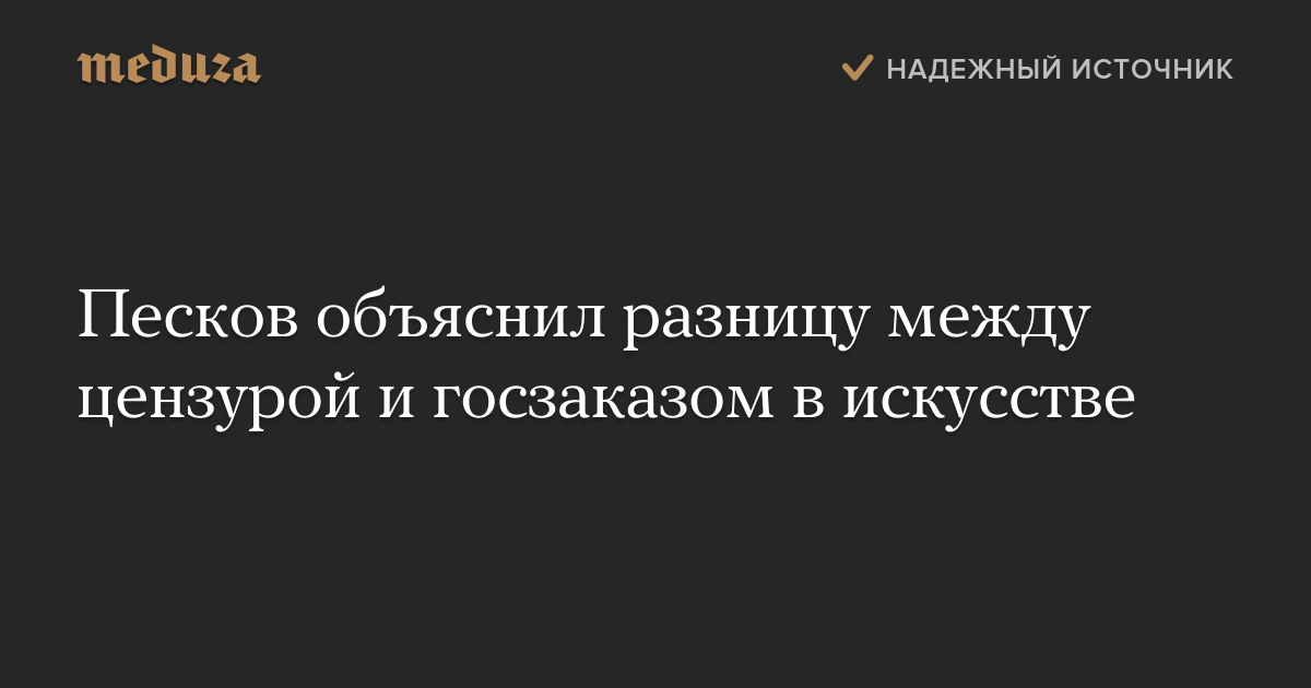 «Цензура недопустима. <…> Но при этом надо четко дифференцировать те постановки и произведения, которые ставятся или снимаются на государственные деньги или с привлечением каких-то других источников финансирования», — сказал Песков.