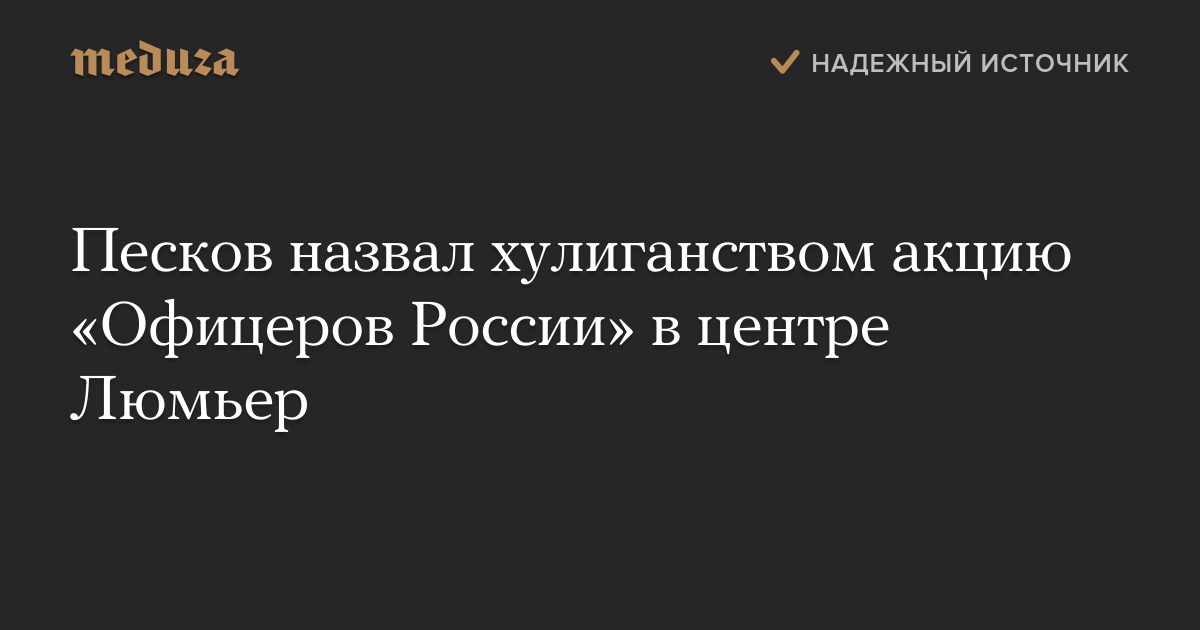 Песков назвал хулиганством акцию «Офицеров России» в центре Люмьер