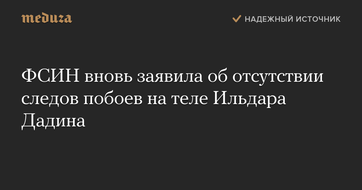 «По результатам осмотра врачей состояние Дадина расценивается как удовлетворительное, следов побоев на его теле не обнаружено, также как и признаков ранее полученных травм», — сообщила ФСИН.
