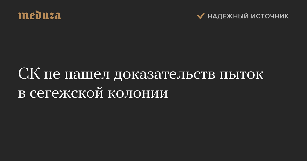 Следственный комитет РФ заявил, что жалобы заключенного Ильдара Дадина на пытки в сегежской колонии № 7, согласно предварительным результатам доследственной проверки, не нашли подтверждения. СК сообщил, что проверка продолжается.