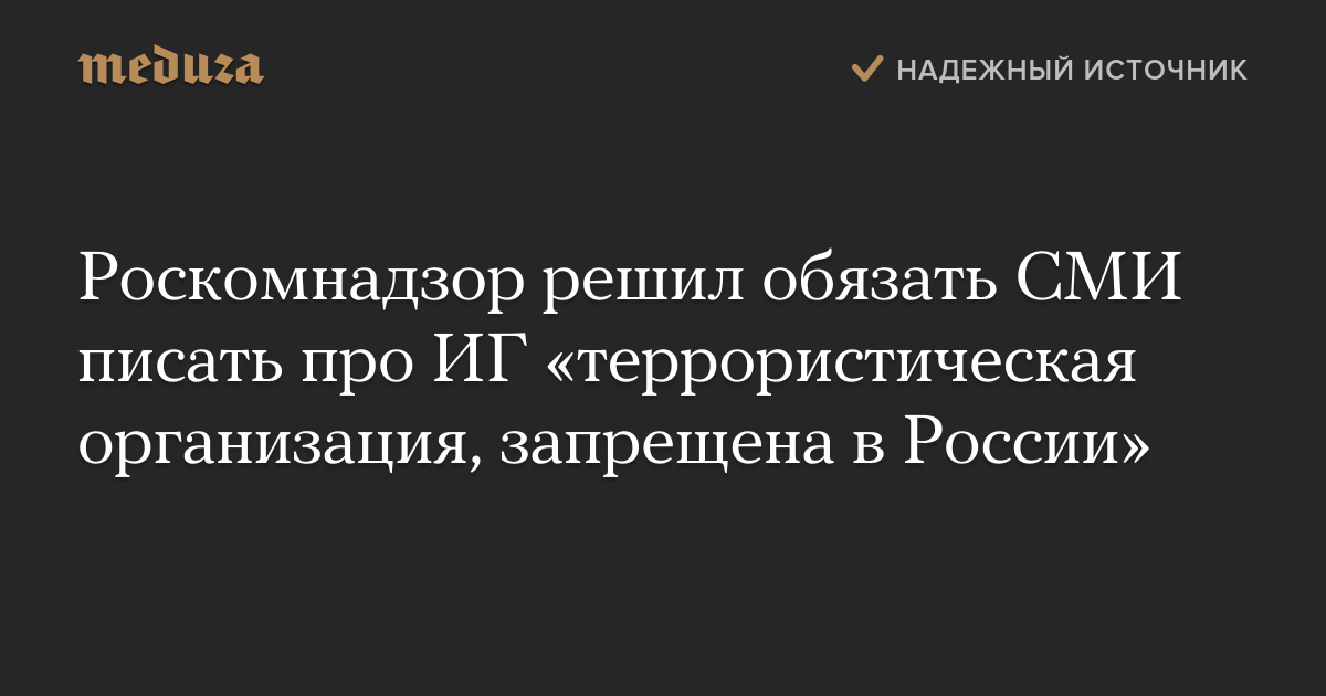 Роскомнадзор решил обязать СМИ писать про ИГ «террористическая организация, запрещена в России»