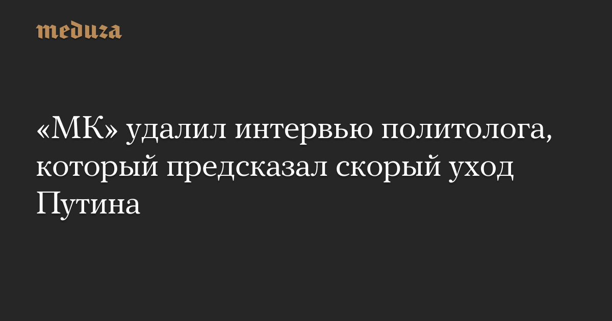 «МК» удалил интервью политолога, который предсказал скорый уход Путина