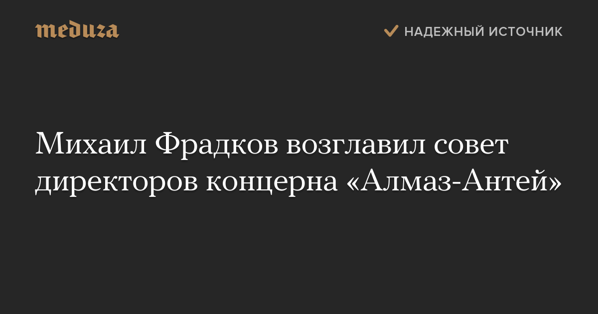 До Фрадкова совет директоров «Алмаз-Антея» возглавлял гендиректор корпорации «Ростех» Сергей Чемезов.