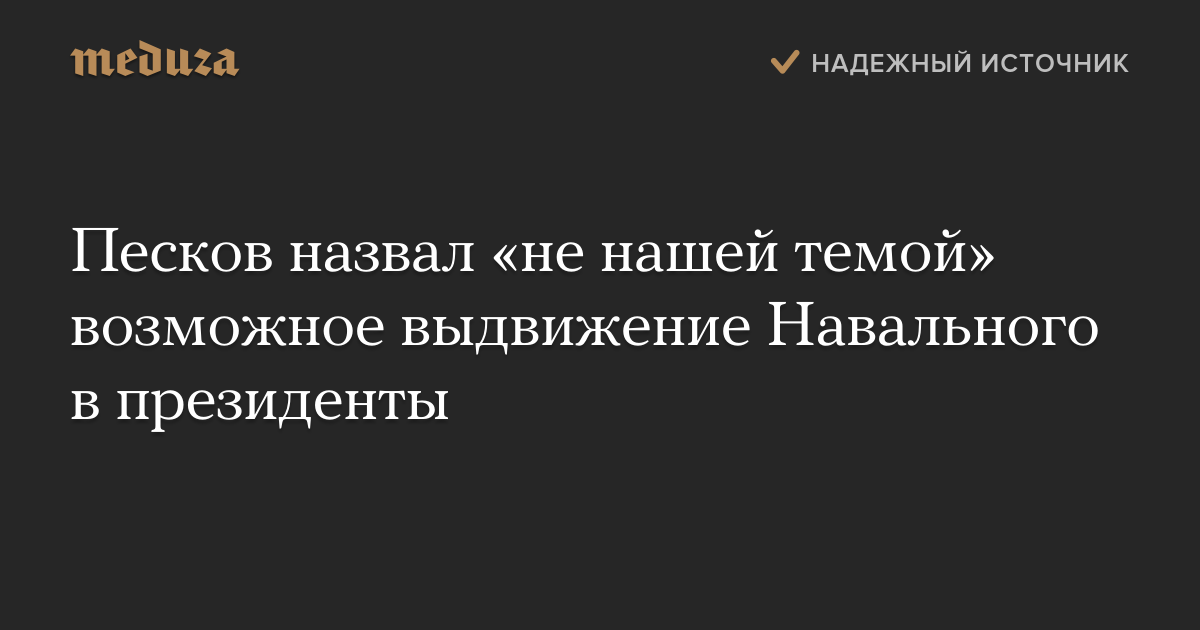 Песков назвал «не нашей темой» возможное выдвижение Навального в президенты