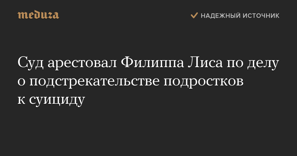 Суд арестовал Филиппа Лиса по делу о подстрекательстве подростков к суициду