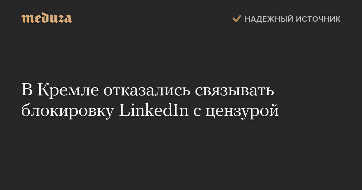 В Кремле отказались связывать блокировку LinkedIn с цензурой