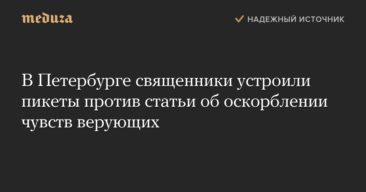 В Петербурге священники устроили пикеты против статьи об оскорблении чувств верующих