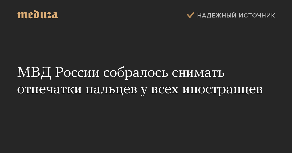 МВД России собралось снимать отпечатки пальцев у всех иностранцев