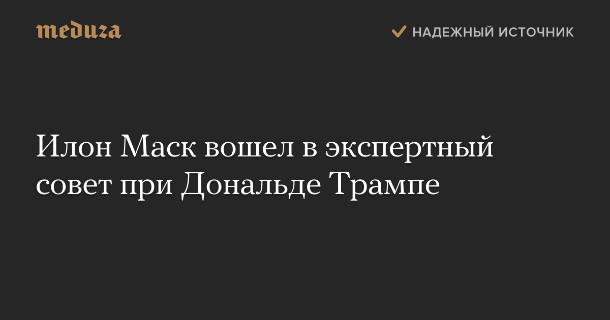 Основатель компаний Tesla и SpaceX Илон Маск вошел в учрежденный избранным президентом США Дональдом Трампом совет с участием глав крупнейших американских компаний. Об этом 14 декабря объявила команда Трампа.