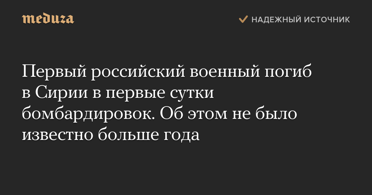 Первый российский военный погиб в Сирии в первые сутки бомбардировок. Об этом не было известно больше года