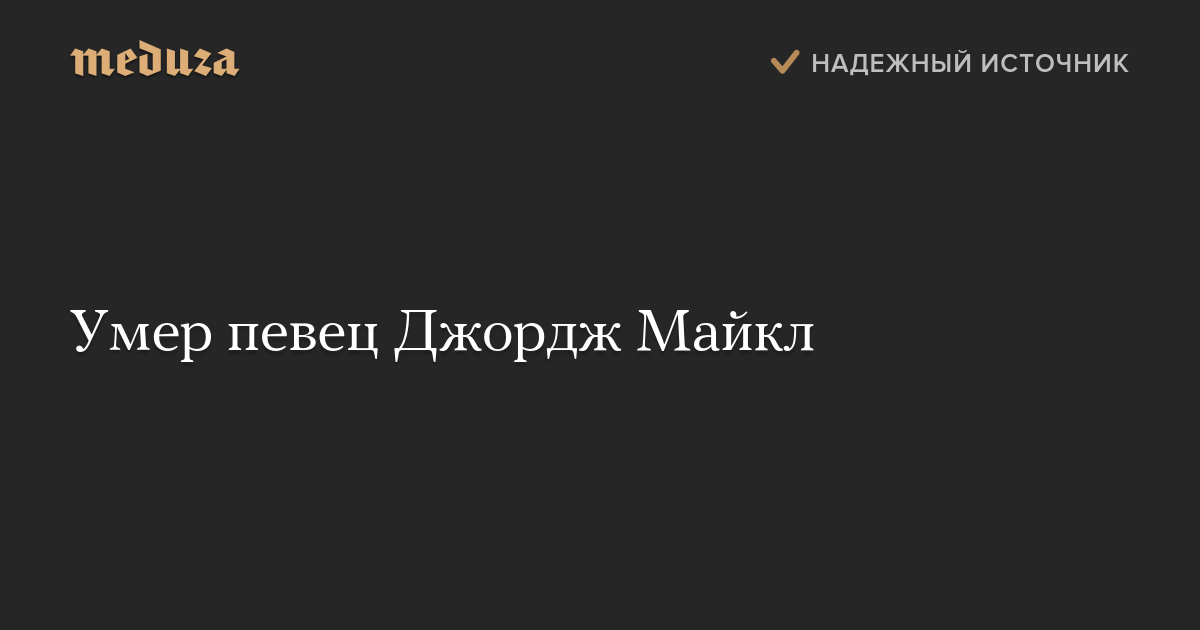 25 декабря в возрасте 53 лет умер певец Джордж Майкл. Как сообщает The Mirror, Майкл скончался у себя дома в Оксфордшире. О причинах смерти пока ничего не известно.