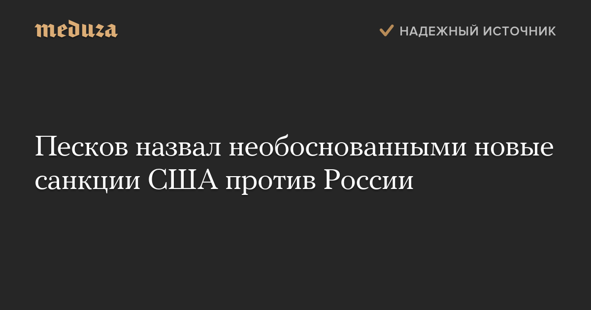 Пресс-секретарь президента РФ Дмитрий Песков заявил, что новые санкции, введеные США против РФ в связи с кибератаками, являются «необоснованными и незаконными с точки зрения международного права».