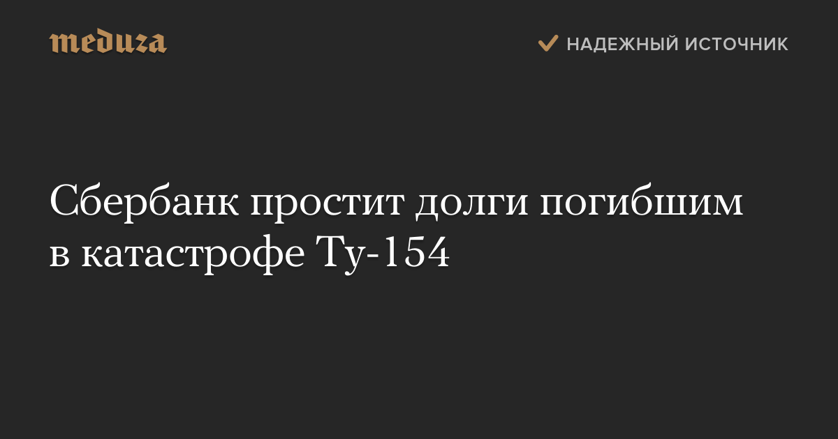 Сбербанк простит долги погибшим в катастрофе Ту-154