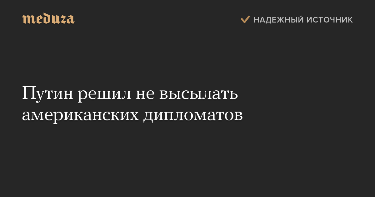 Путин решил не высылать американских дипломатов