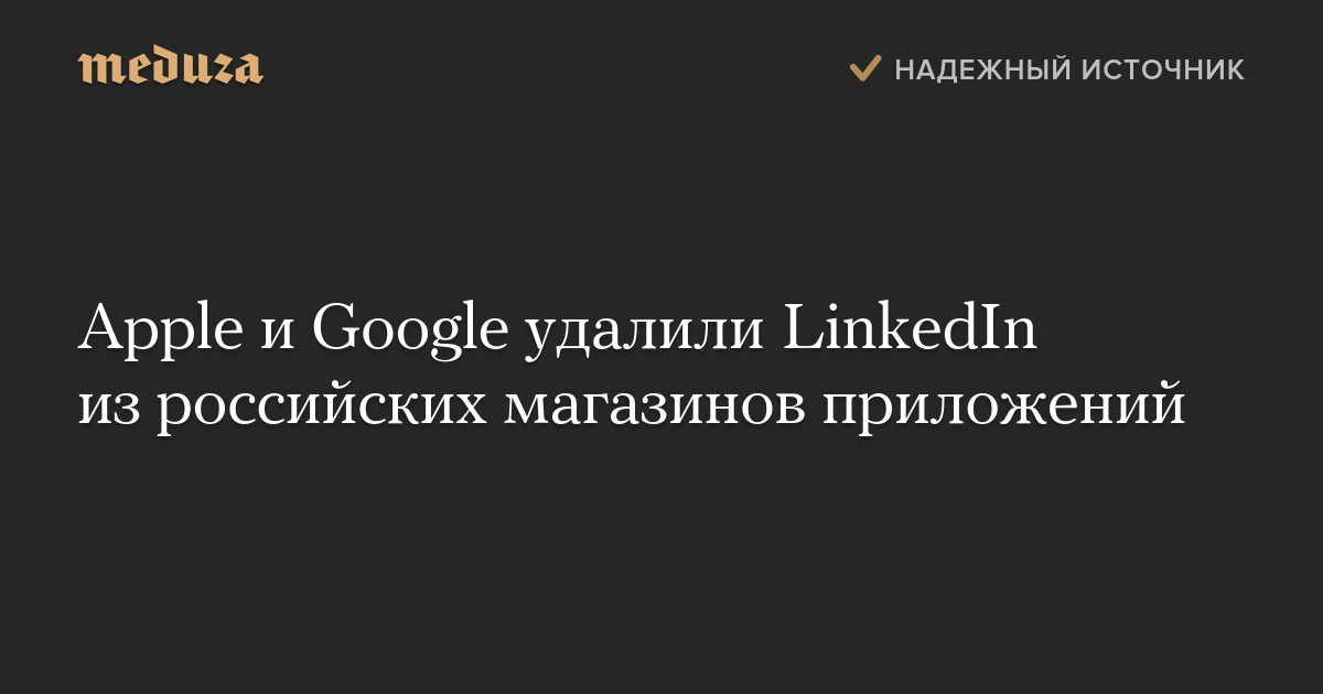 Apple и Google по требованию российских властей удалили мобильное приложение LinkedIn из российских магазинов App Store и Google Play.