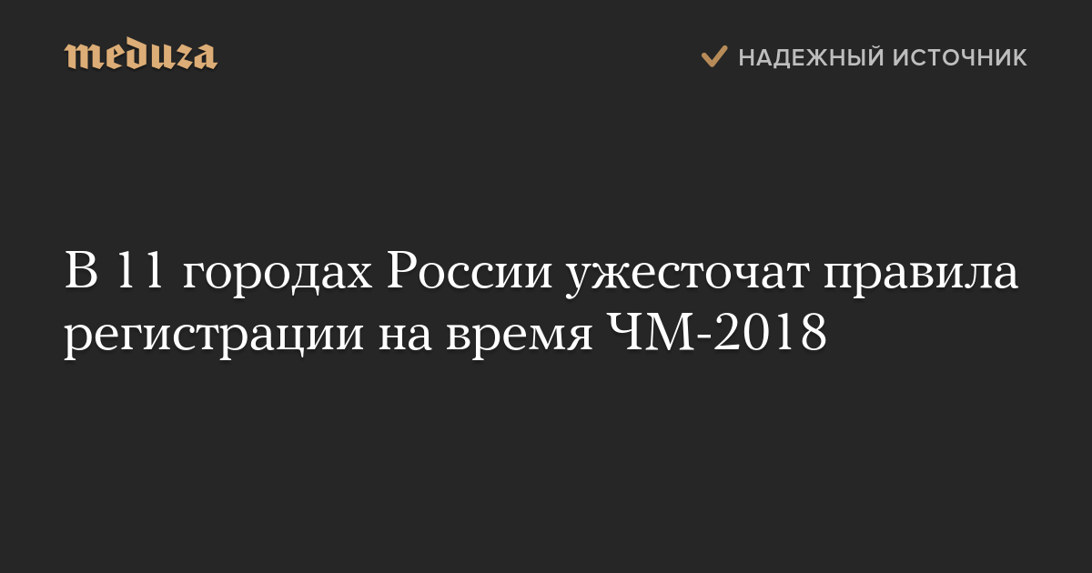 В 11 городах России ужесточат правила регистрации на время ЧМ-2018