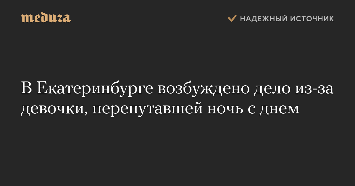 В Екатеринбурге возбуждено дело из-за девочки, перепутавшей ночь с днем