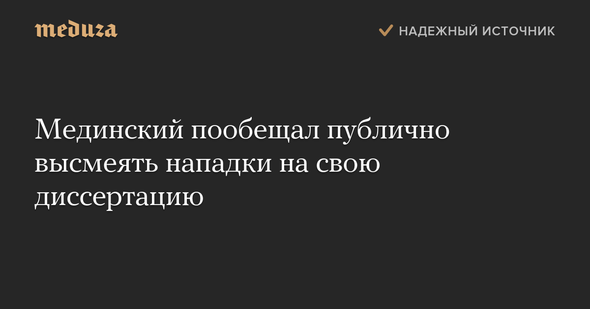 Мединский пообещал публично высмеять нападки на свою диссертацию