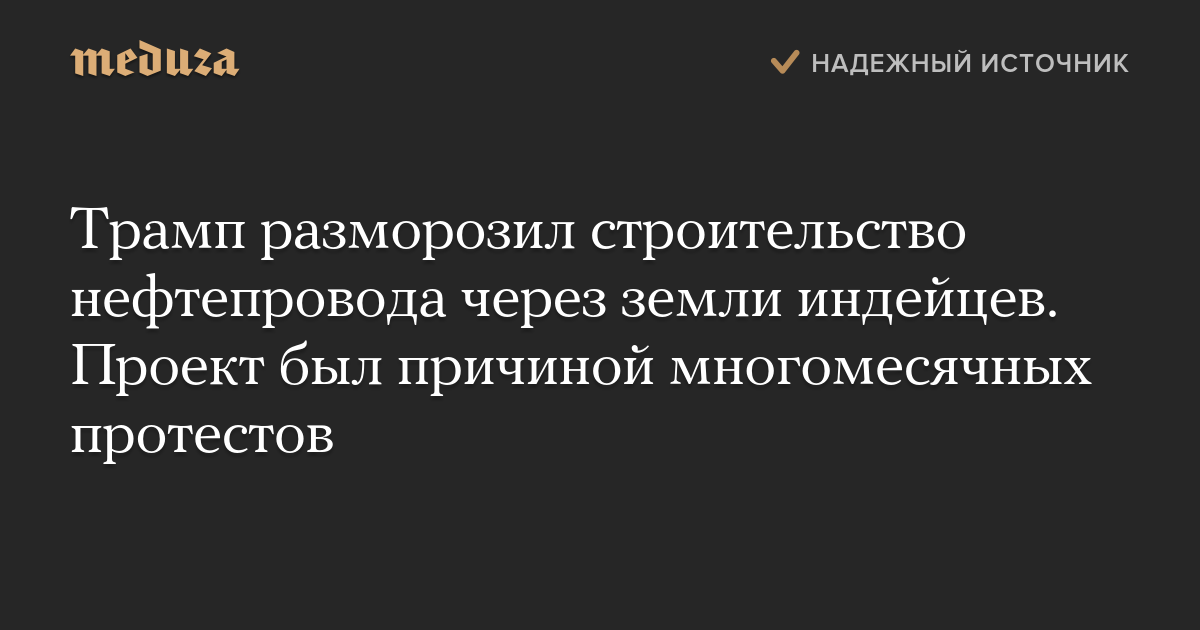 Трамп разморозил строительство нефтепровода через земли индейцев. Проект был причиной многомесячных протестов