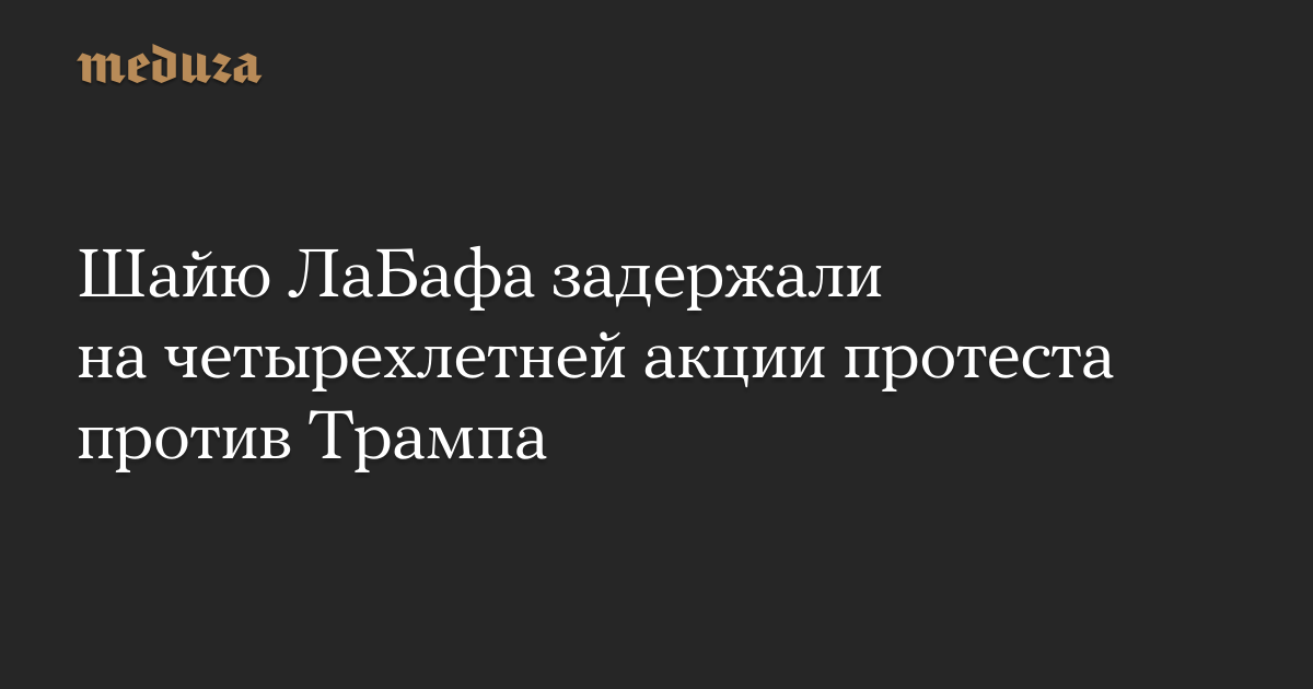 Актера Шайю ЛаБафа вечером в среду, 25 января, задержала полиция Нью-Йорка. На ЛаБафа надели наручники на месте акции под названием #HeWillNotDivideUs («Он не разделит нас»), которую ЛаБаф проводит в знак протеста против политики президента США Дональда Трампа.