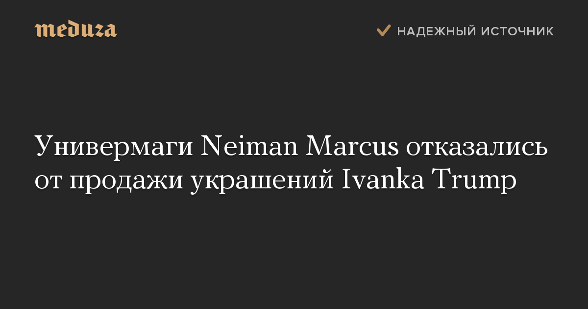 Сеть универсальных магазинов Neiman Marcus отказалась от продажи ювелирных украшений Ivanka Trump, выпускаемых компанией, основанной дочерью президента США Дональда Трампа.