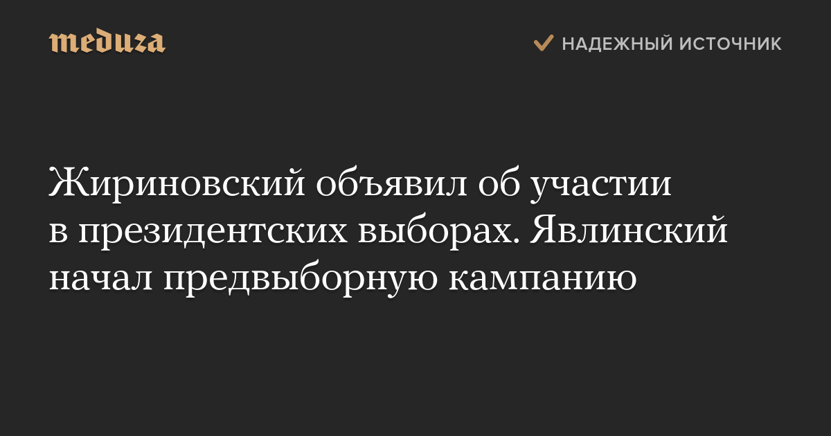 Жириновский объявил об участии в президентских выборах. Явлинский начал предвыборную кампанию