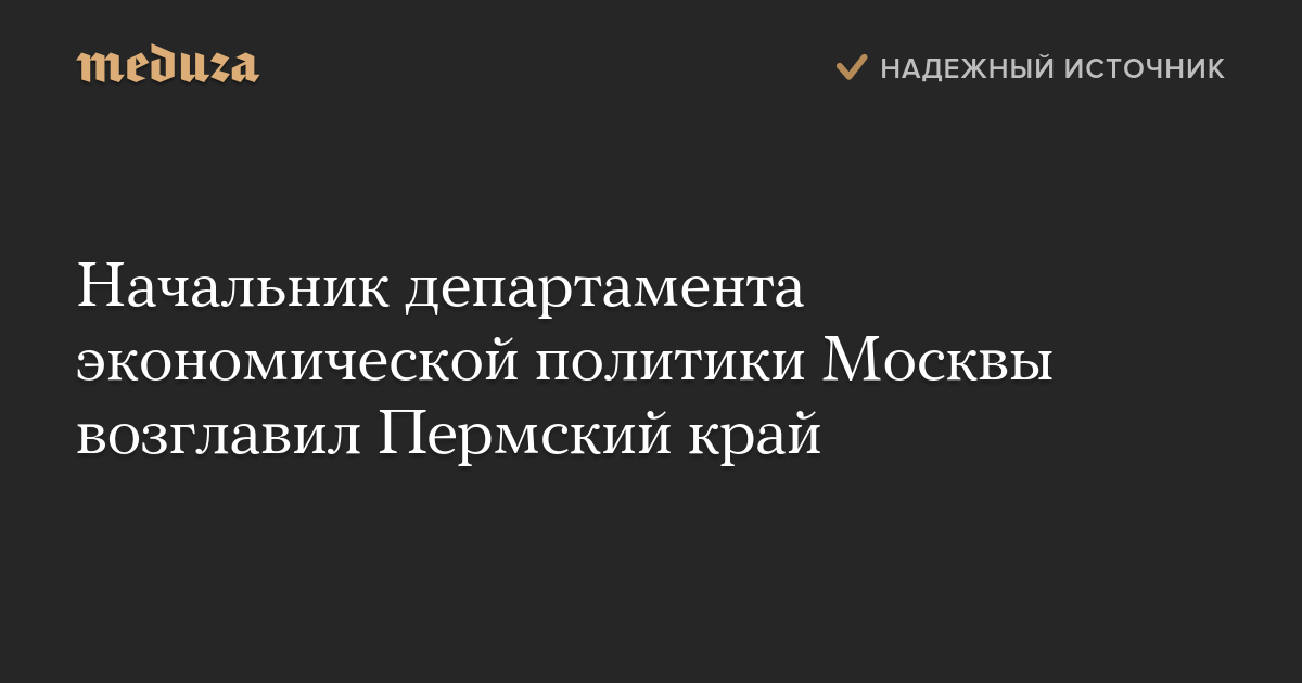 Начальник департамента экономической политики Москвы возглавил Пермский край